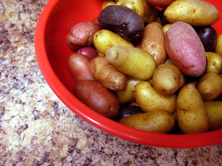 1.5 lb. bag baby potatoes (these were a mix of white, red, and purple fingerling potatoes)