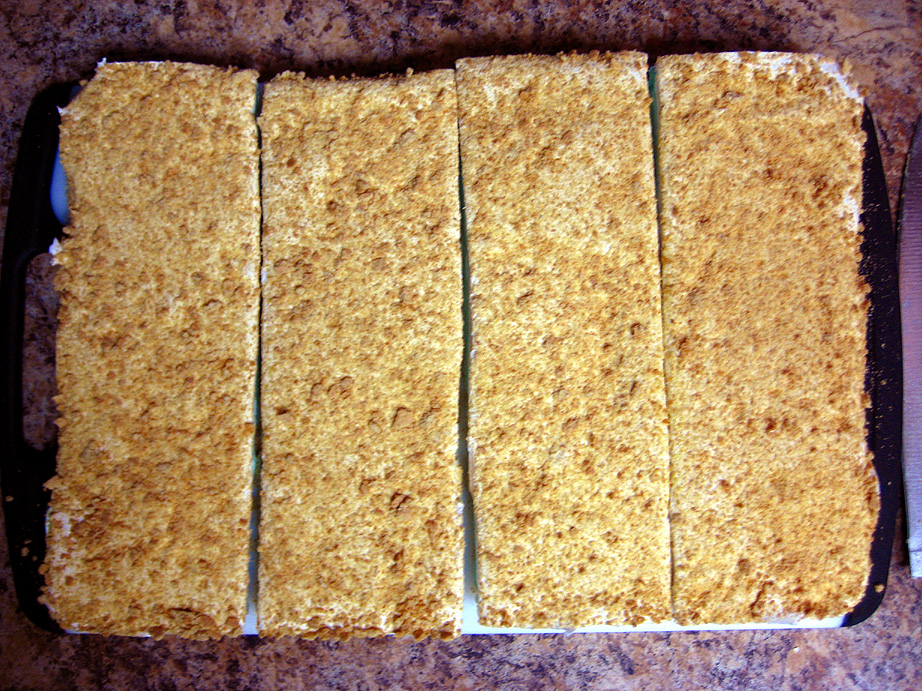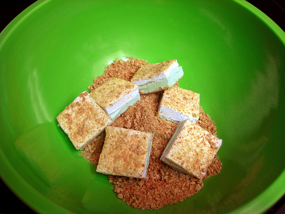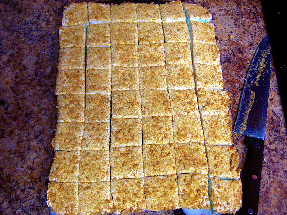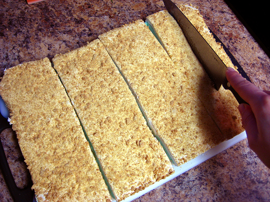 When they’re all cut, drop a few squares at a time into the bowl of crumbs, and toss to coat the cut edges. Eat one immediately while they’re fresh, and savor all the lime-y goodness!