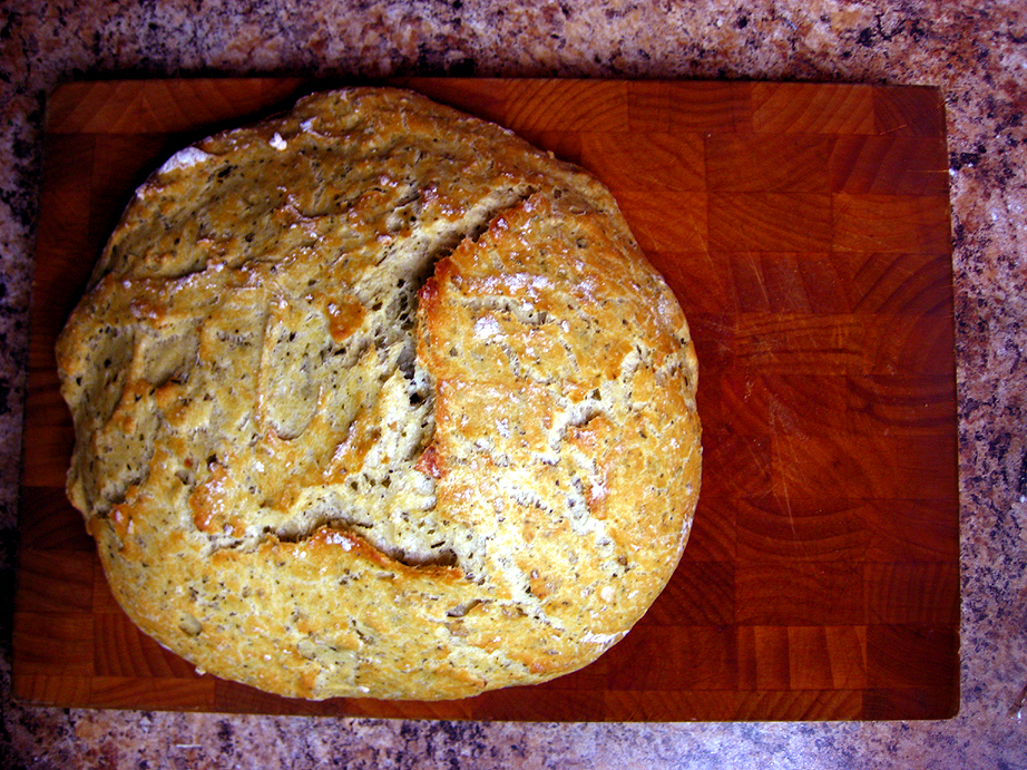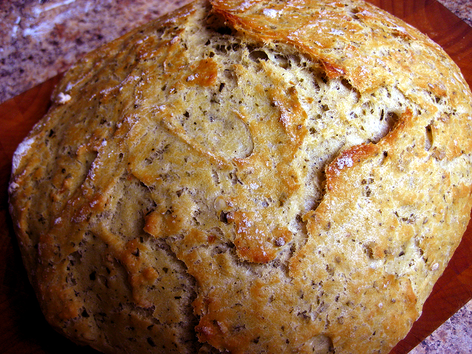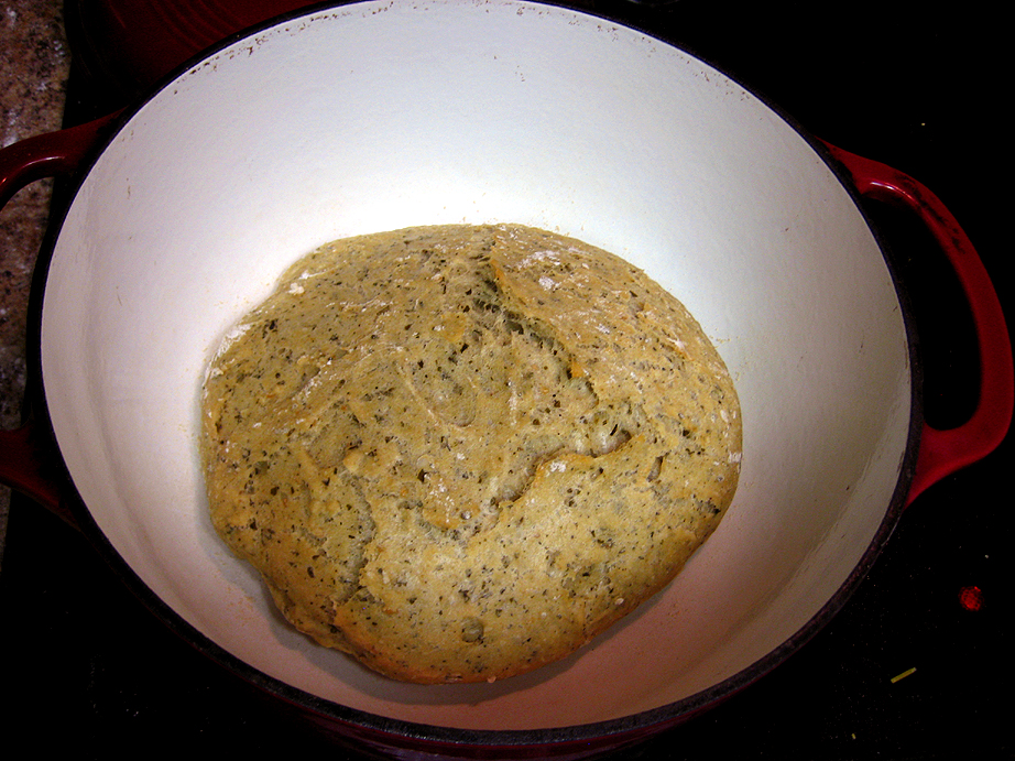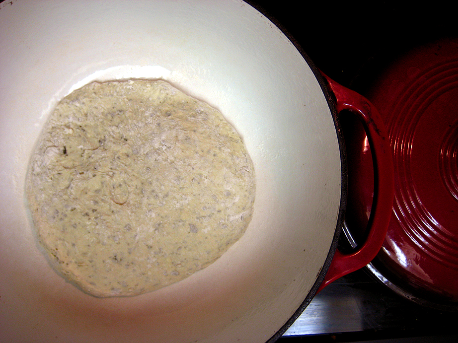 A short while back, Jim Lahey’s No-Knead Bread made the rounds on the interwebs. It’s still super popular, as more people discover the recipe all the time. It’s a miracle of bread- and dough-making technique, perfect for all the people out there who feel that a good loaf of homemade, crackly-crusted bread is beyond them. The ingredients are mixed by hand into a rough dough which sits at room temperature for several hours, and then gets baked in a cast iron dutch oven. When I first made it, I was shocked that a loaf of bread so good was able to come from my crappy electric oven.