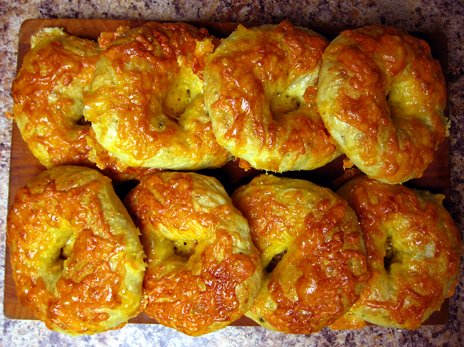 I’ve not yet been so fortunate as to travel to New York City, the bagel mecca of the United States, but I hope very much to get the chance one day. Until I can get myself to a surely awesome place like Russ & Daughters, I must console myself with making my own bagels at home. These are leaps and bounds better than the bagels I turned out at home all those years ago, and with good reason. This recipe originally comes from a restaurant and deli in the Jewish quarter of Paris called Jo Goldenberg’s, which closed it’s doors in 2006. I stumbled across the recipe via one of my favorite websites, Serious Eats. I’ve adapted it just slightly from the original recipe, mostly so I could turn it into some Jalapeño-Cheddar bagels! I told a co-worker that I was planning on making bagels and he said I should make some Jalapeño-Cheddar ones, so I have him to thank for that delicious idea. I also made some Everything bagels, which were equally awesome and tasty.