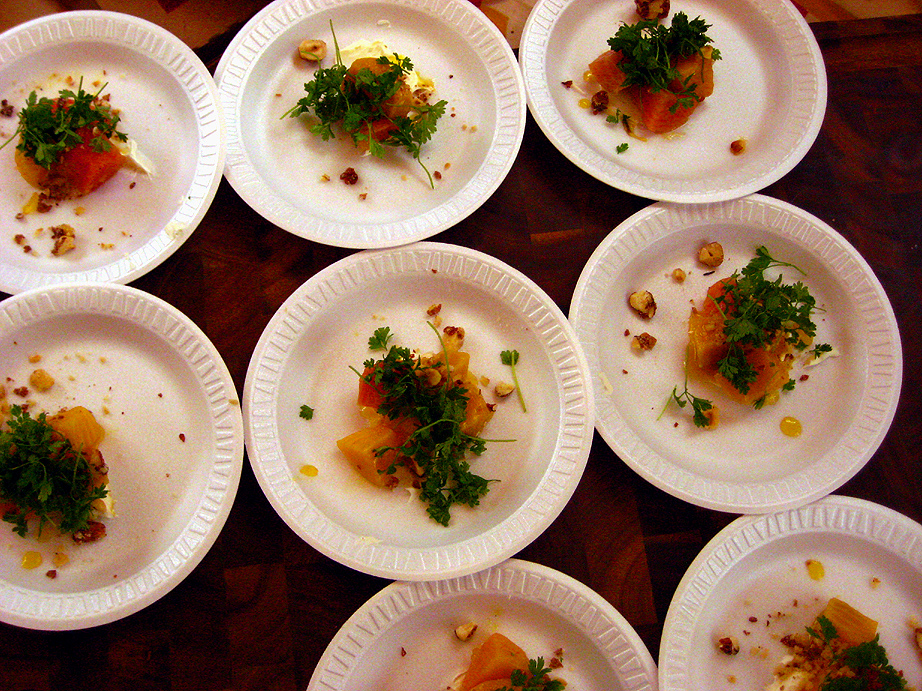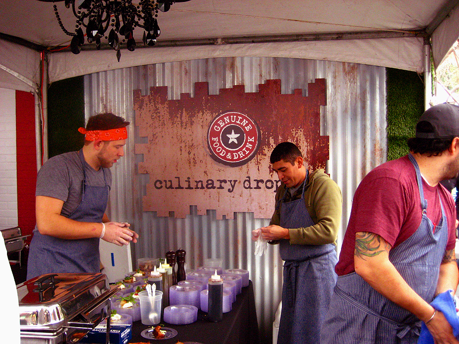 Culinary Dropout was featuring some super tasty barbecued ribs. The food itself was outstanding, super tender and lots of great smokey flavor. However, when you’re milling about in very close quarters with lots of strangers, ribs were a bit problematic to eat, nevermind getting the sauce all over your face.