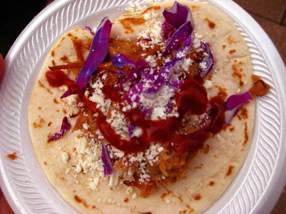 I failed to take a photo of the first thing I tasted cause I was just too hungry (it was bacon-wrapped pork tenderloin with green chile risotto. Wow.) The second thing I tasted, I managed to snap a pic of. It was these delicious barbecue pork tacos from Tom’s Thumb! Super tasty and tons of great flavor. The cabbage added the perfect amount of crunch to complement the softness of the meat and tortilla.