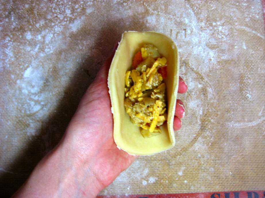 I know a lot of people who have really only eaten sweet dessert-type empanadas, pumpkin or pineapple being very common, but I’m partial to the savory fillings. I don’t know if I’d enjoy the common Spanish filling that includes green olives and hard-boiled eggs, but luckily making them in my own kitchen means I can fill them with whatever I’d like!