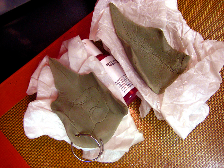 I had read about nightmarish situations in which people’s gumpaste creations were ruined because of cracking, so to prevent the gumpaste from drying too rapidly and causing cracks, I took the advice of some people on cake decorating forums and used a 50/50 mix of gumpaste and storebought fondant. It worked like a charm, no cracking!