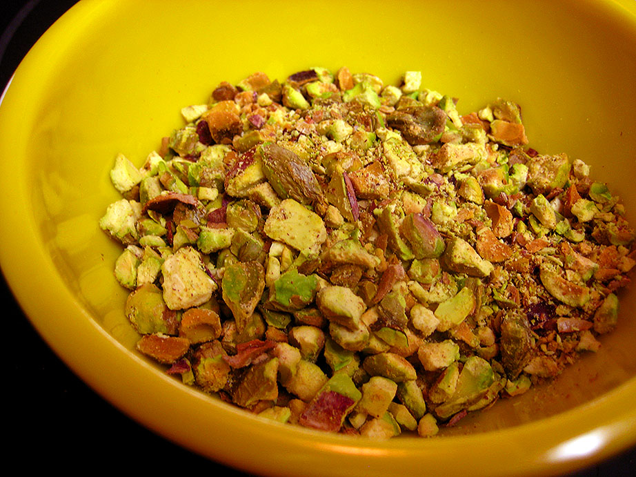 Coarsely chop the pistachios, either with a knife or a food processor. Honestly, my preferred method is to just throw them into a Ziploc bag and mash them with the bottom of a can of beans, but I’m just ghetto like that. When the pistachios are as chopped as you’d like them, they’ll go into the bowl with the veggies, as well. Throw in the feta while you’re at it. Next, wash the leeks well and chop them finely. Guess what? These go into the bowl ‘o veg, too.