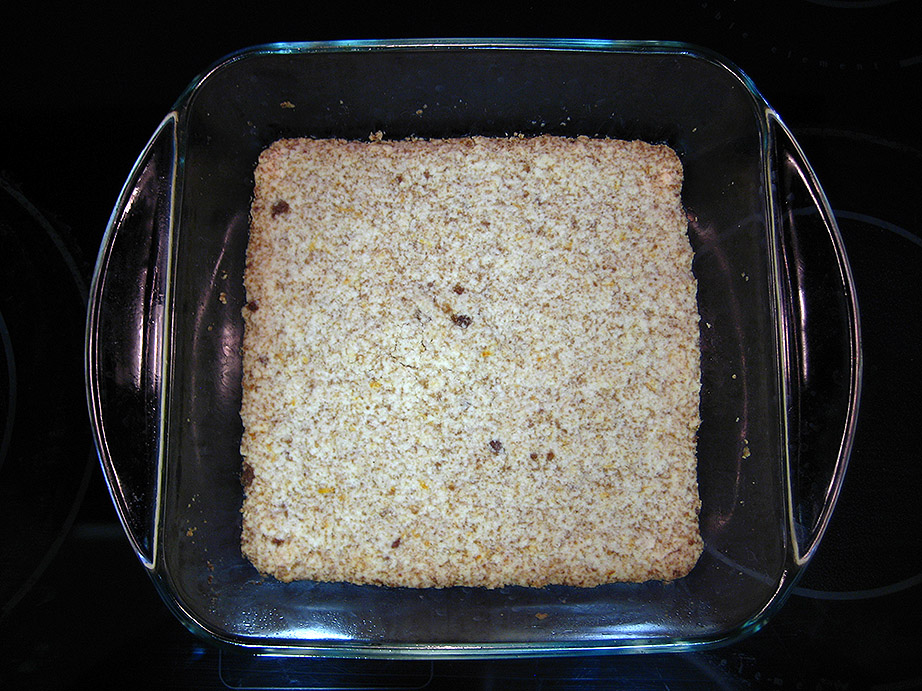 Begin by making the shortbread crust. First, preheat the oven to 350 and lightly grease an 8×8 inch baking dish, and set aside. In a medium bowl, combine all the crust ingredients except the butter. Add the softened butter and mix by hand or with a pastry cutter, until the whole mixture is in large coarse crumbs. Dump this crumbly mixture into the prepared baking dish and press into the bottom of the pan, not going up the sides. Bake the crust in the middle of the oven until just getting browned on the edges, about 25 minutes. While the crust is baking, make the filling!