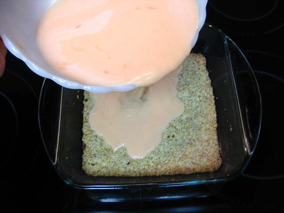 Crust Ingredients Crust Mixed Crust BowlCrumbs in Pan Crust BakedPouring Ready to Bake