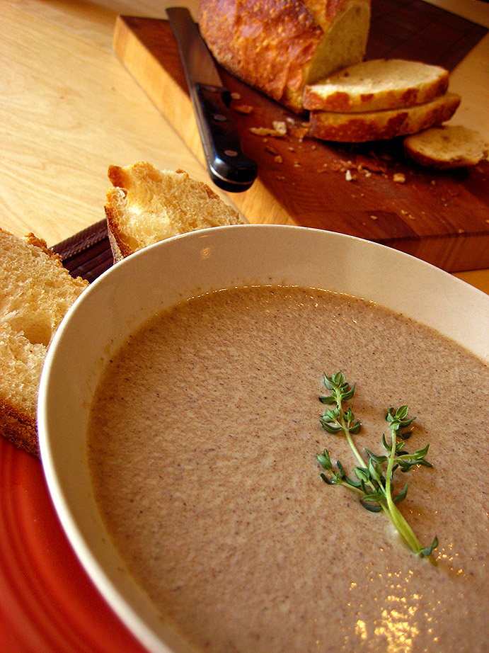 You can blend the soup just partially, so that there’s still some mushroom chunks going on, or you can go full tilt and blend up everything til it’s super creamy. I chose the latter option. After pureeing, stir in one tablespoon more of the wine. I like the brighter flavor it lends to the soup.
