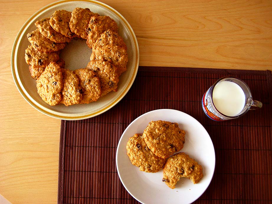 When I took the first pan out of the oven, I took a bite from one of the cookies while it was still warm, and was flooded with nostalgia. I probably haven’t eaten one of these cookies since I was at least 10 or younger, so it’s been a while! They taste exactly as I remember them, slightly crisp on the outside and soft and pillowy on the inside. Let me tell you, these are perfect when dunked into a glass of milk — even better when your glass is a super cute Garfield mug that came with a Happy Meal promotion from McDonald’s in the early 1980s, like mine did. This mug along with a plate of these soft oatmeal raisin cookies encompasses my childhood to the nth degree. I love these cookies, and I love that Garfield mug. I love you too, Mom. Thanks for the cookies.