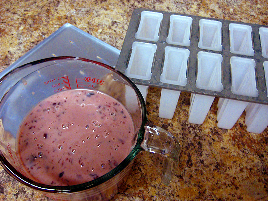 If you’ve got a 4-cup measuring cup, now is the time to use it for easier portioning into your molds! This popsicle mold is a great classic everyday popsicle mold, and the one I swear by. You’ll need some good 3/8 inch wide popsicle sticks as well, so plan accordingly when buying your popsicle hardware.