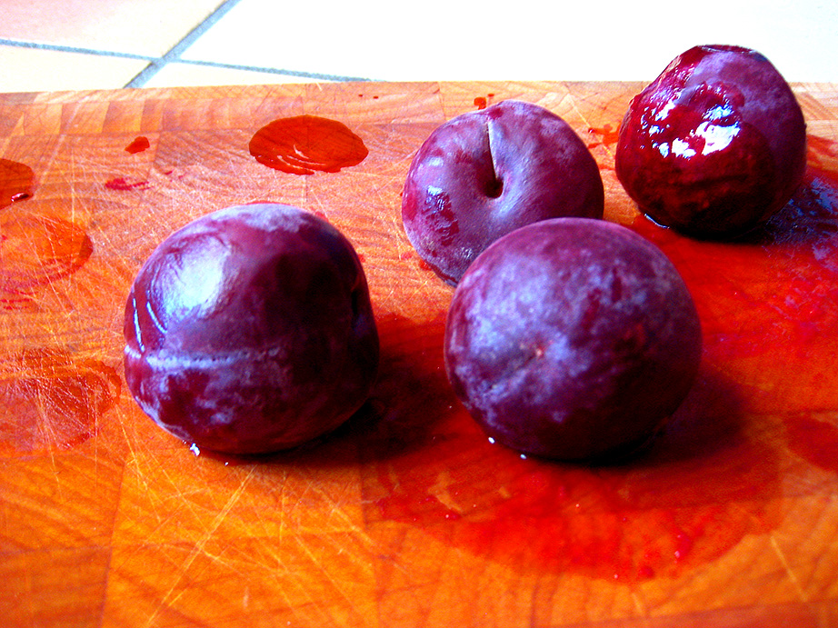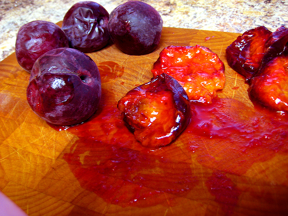 A while back, I spied some interesting fruit at the grocery store. Black velvet apricots. Have you ever heard of those? I hadn’t. They have skin that’s bluish-purple and fuzzy, but the flesh inside is still golden-colored like a regular apricot. I bought a few and wasn’t sure what to do with them, so I chucked them into the freezer (which may not have been the best idea) and waited for some inspiration. FYI, frozen apricots are nobody’s friend. They sorta break down and the flesh inside gets mushy, and though they still taste good, they won’t be good for anything but cooking. Like, say, in a flaky butter-free tart shell. With some sweet dark cherries. Let’s make it!