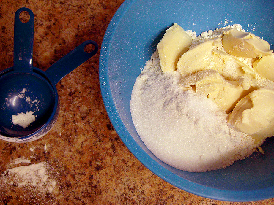 Begin by preheating your oven to 350. Grab a 9″ fluted tart pan and set it on a foil-lined baking sheet and put it somewhere out of the way.