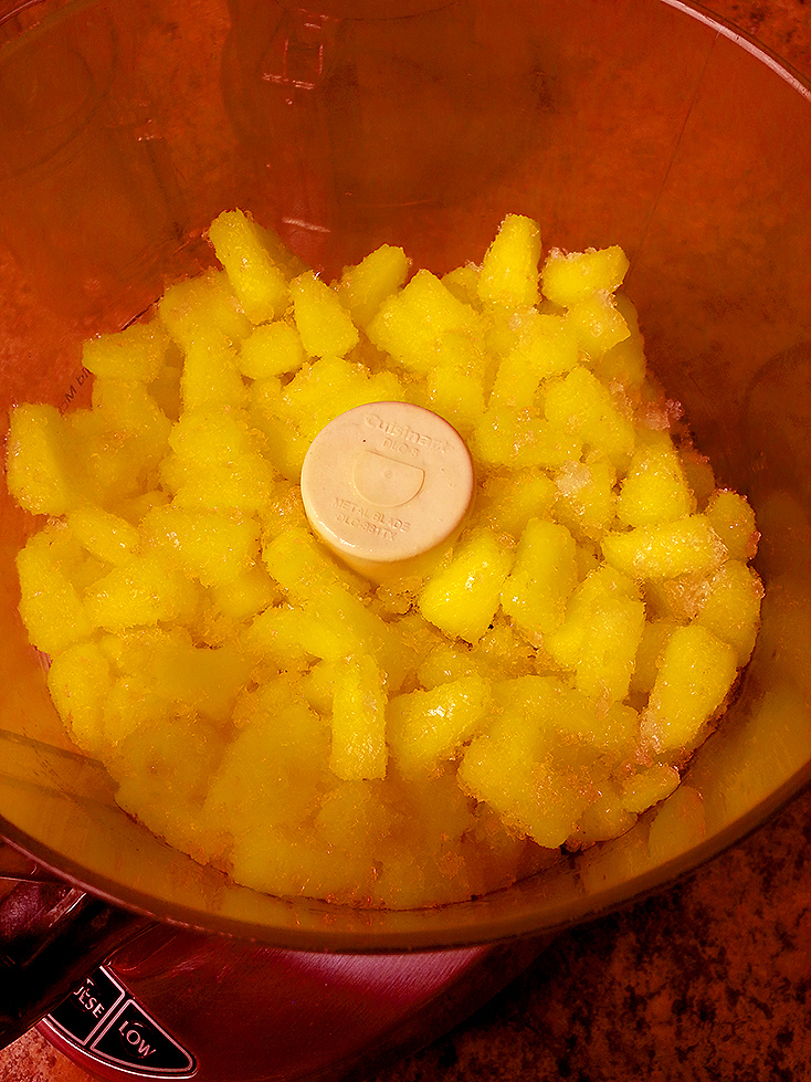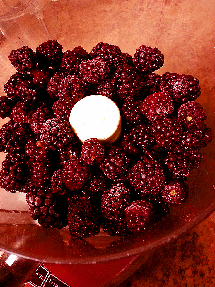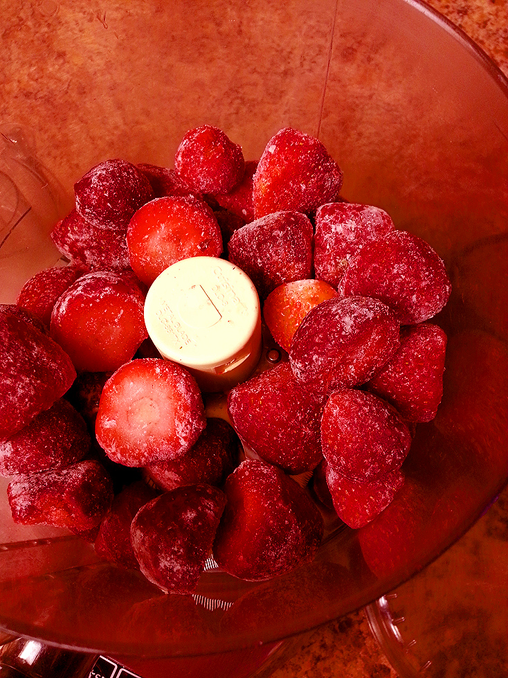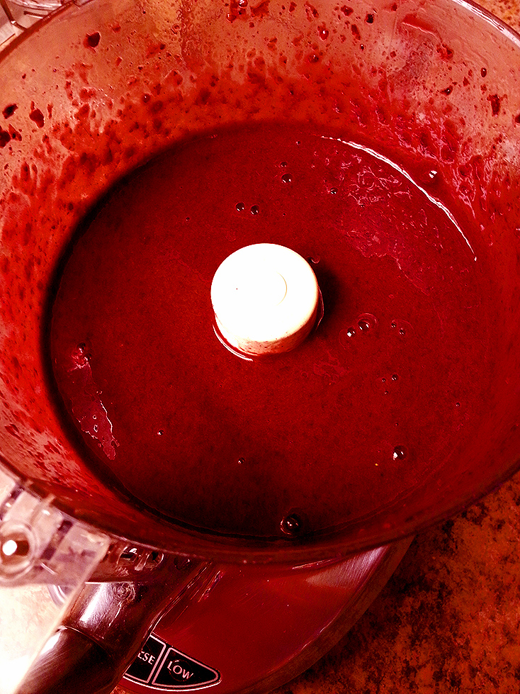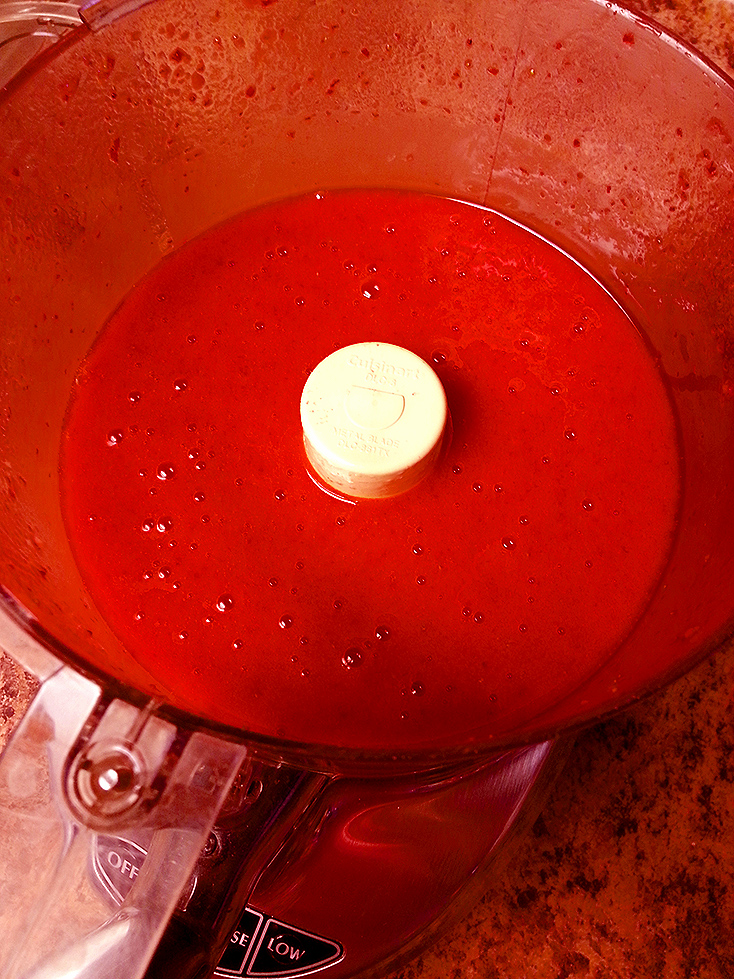 Once the simple syrup has cooked for 10 minutes, pull it off the heat and pour it through a strainer directly into the processor over the frozen fruit (except the cinnamon syrup, it doesn’t need to be strained). Remember, if you’re not using frozen fruit, let the flavored syrup chill in the fridge for at least an hour. Throw on the lid and process the frozen fruit with it’s add-ins and simple syrup for 30-45 seconds, scraping down the bowl if some of the fruit doesn’t want to get fully mixed in. Behold, tasty and pretty fruit purees! If you don’t plan on using all the puree at once, the remaining amount can be stored in the fridge in jars or some other well-sealed containers for about 5 days.