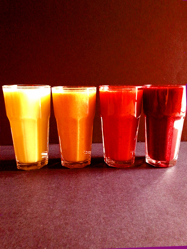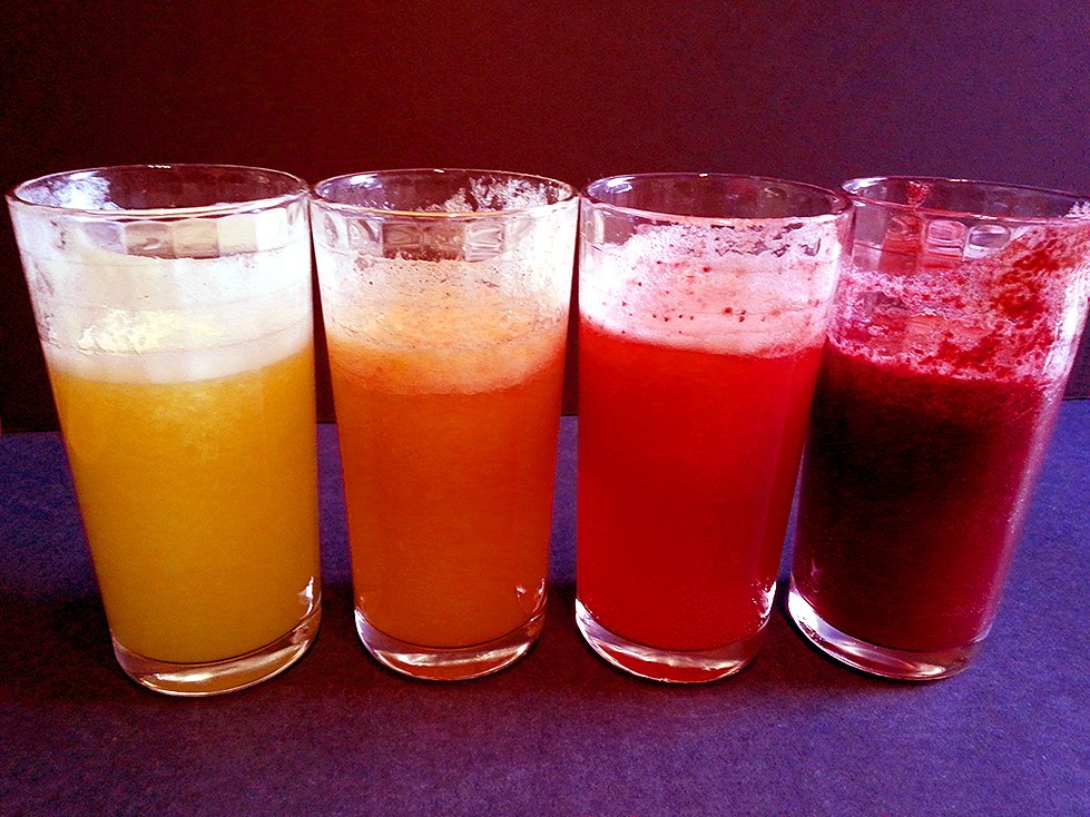 Each batch of puree will make enough for 6-8 servings of soda, depending on how strongly flavored you want your soda to be. If you want to whip up a big batch of each flavor, pour a little less than one full 2-liter bottle of chilled club soda into a large pitcher and carefully stir in the full 2 3/4 cups of one batch of fruit puree. If you want to make individual glasses of soda, pour 8 ounces of chilled club soda into a pint glass and carefully stir in about 8 tablespoons (half a cup) of fruit puree. Guess what you just did? You just made yourself some homemade fruit soda, with no artificial colors or artificial flavors, and no scary high fructose corn syrup!