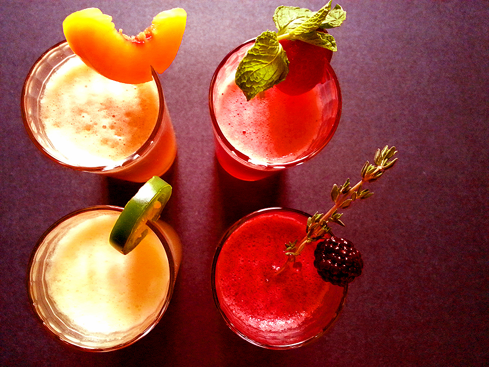 Note: Each batch of fruit puree with yield 2 3/4 cups of puree. If you have great seasonal fruit, feel free to use it! Otherwise, frozen will work just fine. If you’re using fresh fruit that isn’t frozen, you’ll want to chill the simple syrup before pureeing with the fruit.