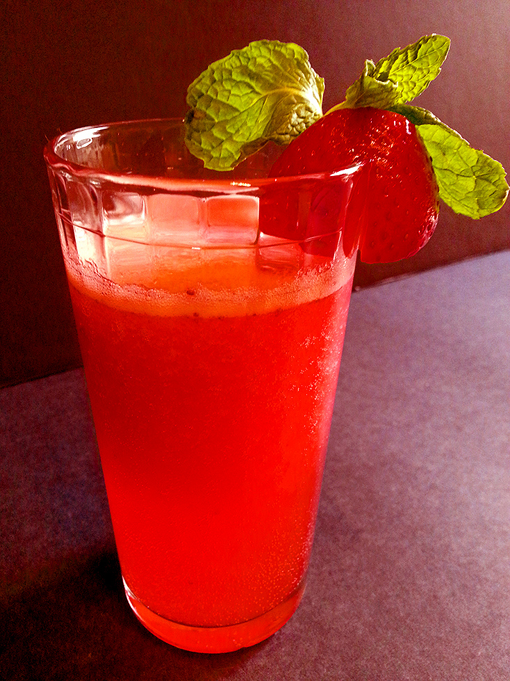16 oz frozen strawberries / 1/2 cup (8 g) fresh mint leaves / club soda, chilled
