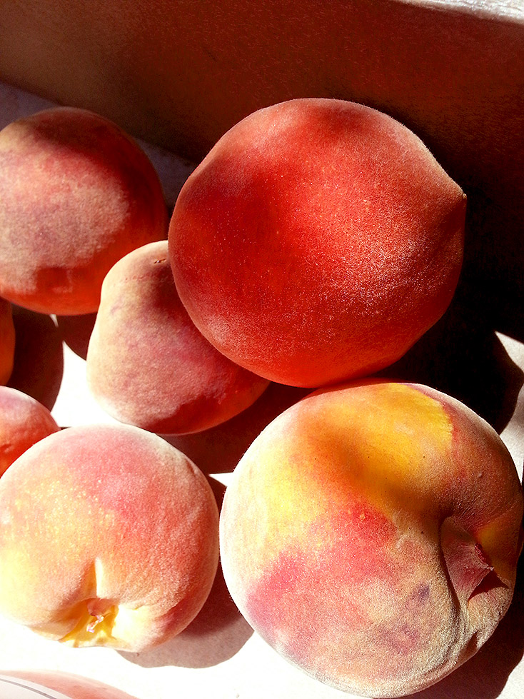 There’s nothing like walking through a peach orchard on a summer morning. I knew it would be beautiful, but the thing I didn’t expect was how good it would smell!! The fragrance of peaches magnified by the morning sun was amazing. Have you ever eaten a fresh, ripe peach right from the tree you just picked it from? I hadn’t before. I think as a society, we’ve mostly become so disconnected from where our food comes from (unless you’re lucky enough to shop at a farmstand or a true farmers market). It was very foreign but so nice to be able to stand in the sunlight and pick my own fruit from the trees in a local orchard. If you’ve never done it before, I highly recommend it if you have the chance. Much better than being bathed in garish fluorescent lights while filling a plastic bag of sub-par produce at the grocery store.