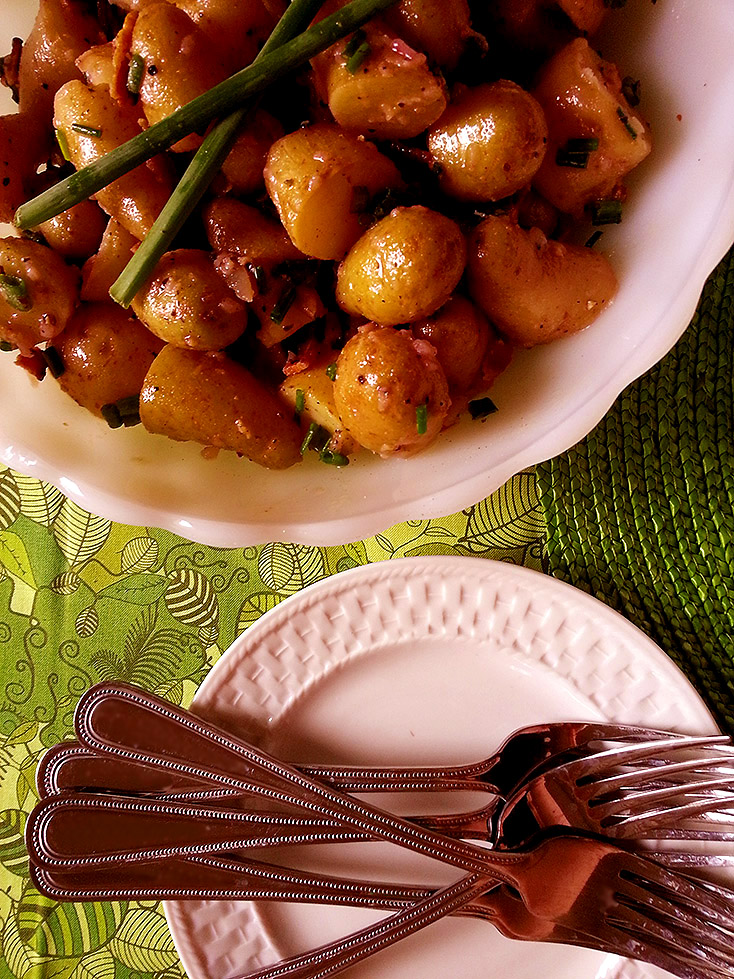 potato salad with chives + crispy bacon