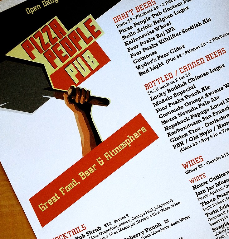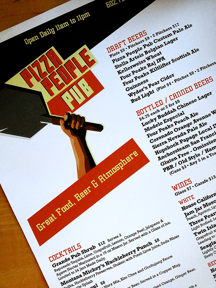 The service was friendly without being pushy, though our lovely server Annabelle did seem a bit flustered at times. I can liken it to a play on opening night — a few people might not remember all their lines, but it was a good show nonetheless. Blame it on the fact that they’ve been open all of 3 days and it obviously takes a little time to work out the kinks and get everyone on their “A” game. If I had to compare Pizza People Pub to another Phoenix restaurant, I’d say it’s like Federal Pizza’s more subdued cousin. Good quality pizza, interesting modern-retro decor, and good tunes that remind me of the Pandora stations of a person who I’d really like to be friends with. All good things, indeed.
