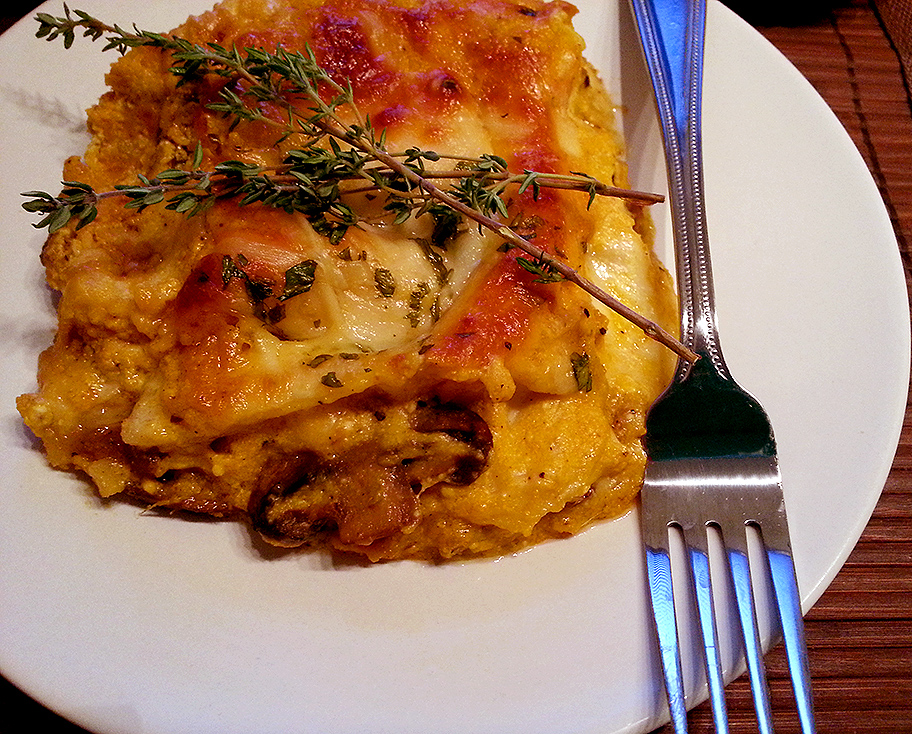 How about pumpkin in lasagna? No, that’s not a typo. “But wait,” you say, “lasagna is supposed to have meat and tomatoes and lots of cheese! How can you fit pumpkin into all that?” Well, dear reader, I encourage you to branch out from your usual ideas of lasagna, cause this stuff is damn good.