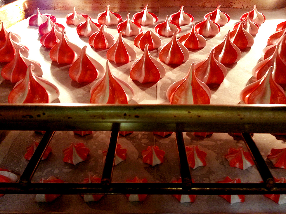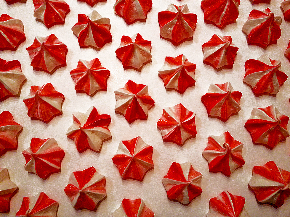 These little cuties popped up recently on Joy The Baker and I knew instantly that I wanted to make them! They’re just too cute. Who wouldn’t love little crunchy meringues flavored with peppermint and streaked with the perfect bright Christmas red?