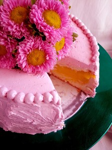 spring flower cake with meyer lemon curd + strawberry frosting