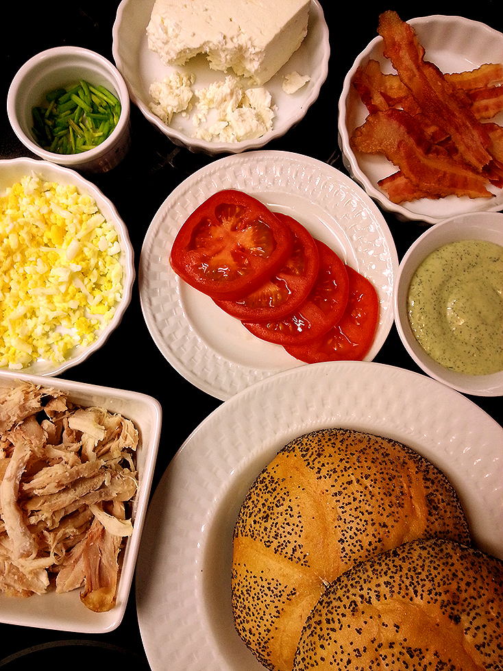 cobb salad sandwiches with chicken, bacon + hard-boiled egg