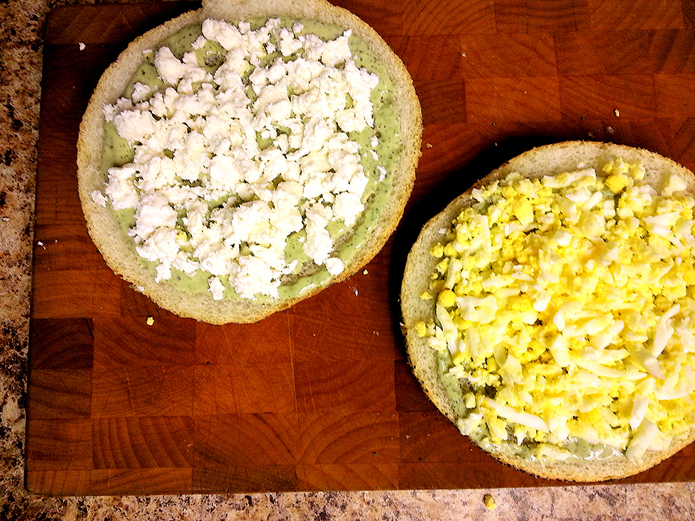 cobb salad sandwiches with chicken, bacon + hard-boiled egg
