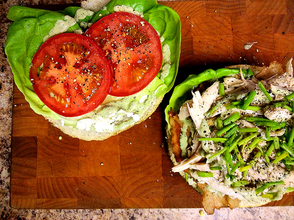 cobb salad sandwiches with chicken, bacon + hard-boiled egg