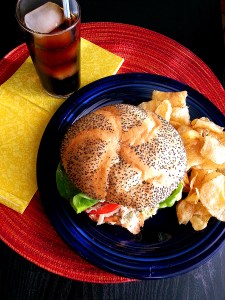 cobb salad sandwiches with chicken, bacon + hard-boiled egg
