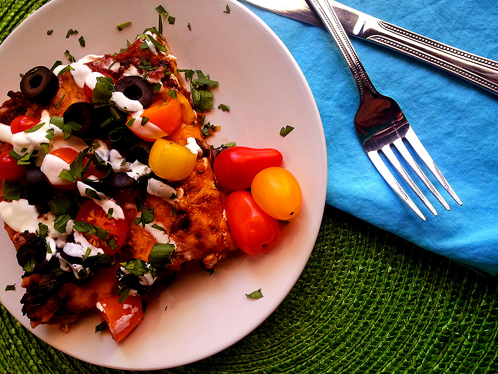 Not only was Friday night a prime night for good TV, it was also pizza night! As a kid, my bar for quality pizza was set kinda low and most often, we would have frozen Red Baron. On occasion, though, my mom would make this Mexican pizza. It was sort of like a taco on pizza crust, and it was oh so good – soft pizza crust with seasoned ground beef, refried beans, tomatoes, melty cheese, green onions, sour cream and black olives. Tasty Mexican pizza and 90s sitcoms? What’s not to love?