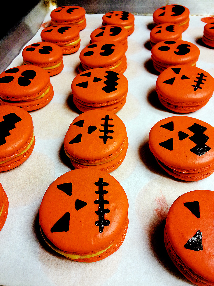 pumpkin spiced jack-o-lantern macarons