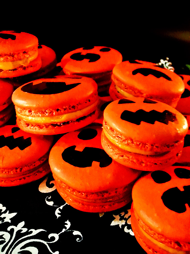 pumpkin spiced jack-o-lantern macarons