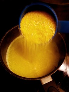 creamy polenta with gouda, portobello mushrooms + tomatoes