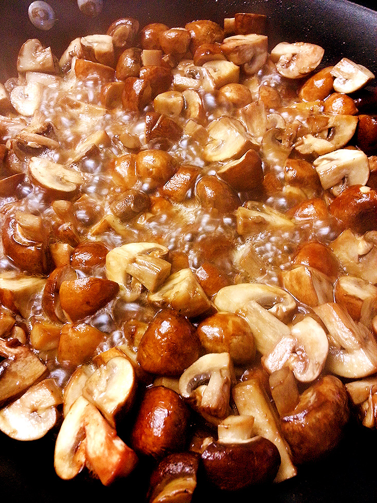 creamy polenta with gouda, portobello mushrooms + tomatoes