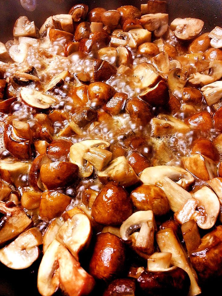 creamy polenta with gouda, portobello mushrooms + tomatoes