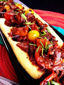 creamy polenta with gouda, portobello mushrooms + tomatoes