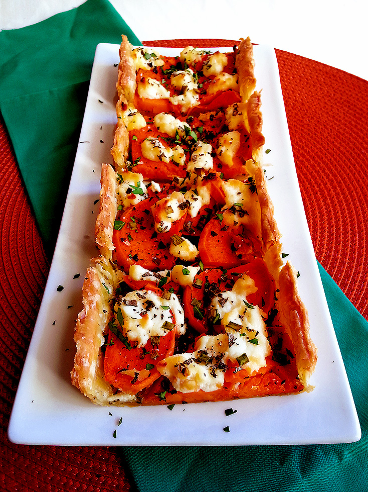 sweet potato, sage + ricotta tart