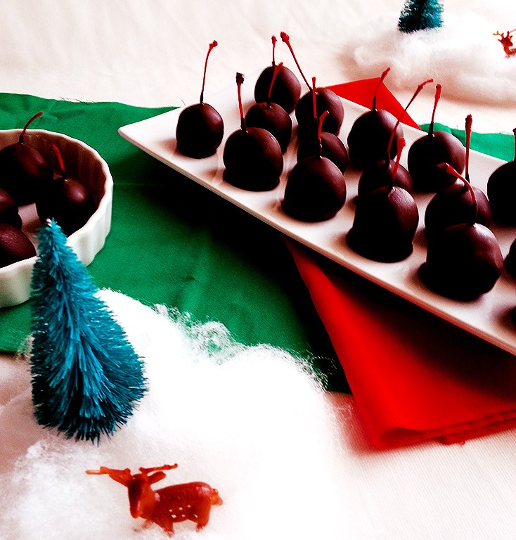 When the wait is over, you’ll be rewarded by a snappy chocolate-y shell covering a bright red cherry and lots of sweet filling. It’s Christmas at its finest! I’m sure to be helping myself to a few, possibly with some spiked egg nog. Totally grandma-approved.