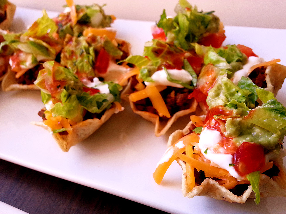 These were one of my Super Bowl recipes from last year, and they’re a perfect one-bite party snack. Lots of seasoned ground beef, cheddar cheese, lettuce, sour cream, tomato, guacamole, and hot sauce just scream old-school taco night, and the little tortilla chip cups are the ideal vessel to hold all of that retro goodness. Make them for your Super Bowl parties this year, or for any get-together that could use an adorable appetizer.