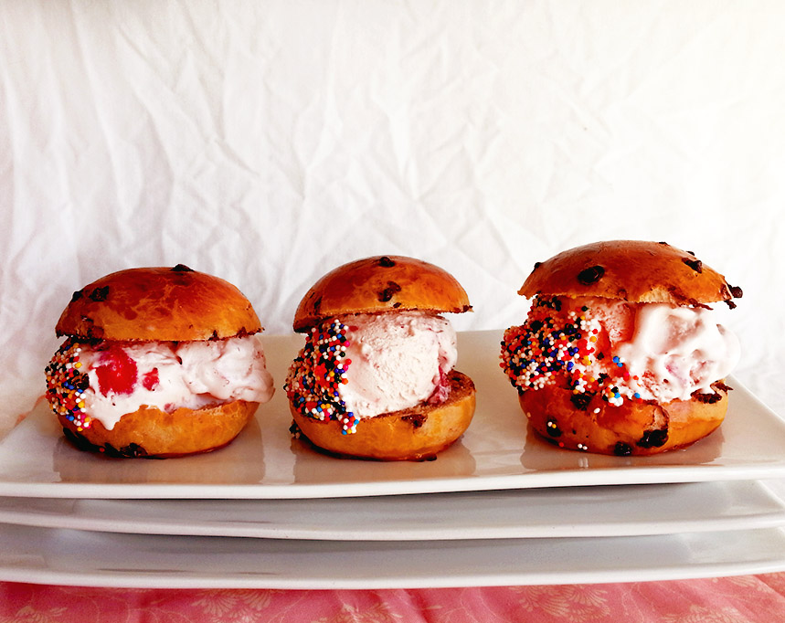 chocolate-strawberry brioche ice cream sandwiches