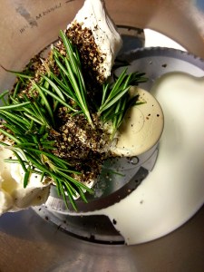 salt + pepper bagels with rosemary cream cheese