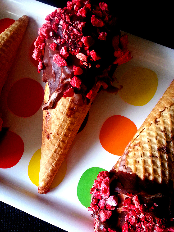 national ice cream month: strawberry + chocolate ice cream drumsticks