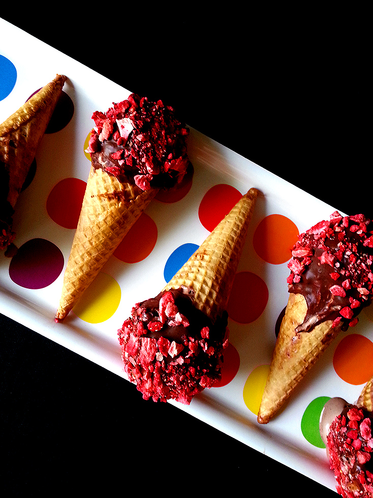 national ice cream month: strawberry + chocolate ice cream drumsticks
