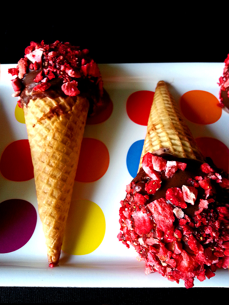 national ice cream month: strawberry + chocolate ice cream drumsticks