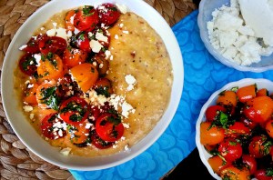 charred corn polenta with herb + tomato salad