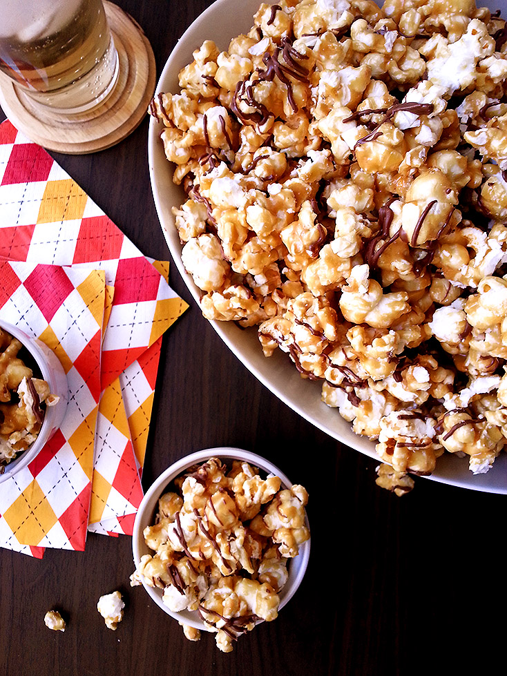 What’s a Super Bowl party without something sweet to break up the monotony of salty, savory snacks? This honey caramel corn will fit right in between the endless bowls of chips and piles of hot wings, for sure!
